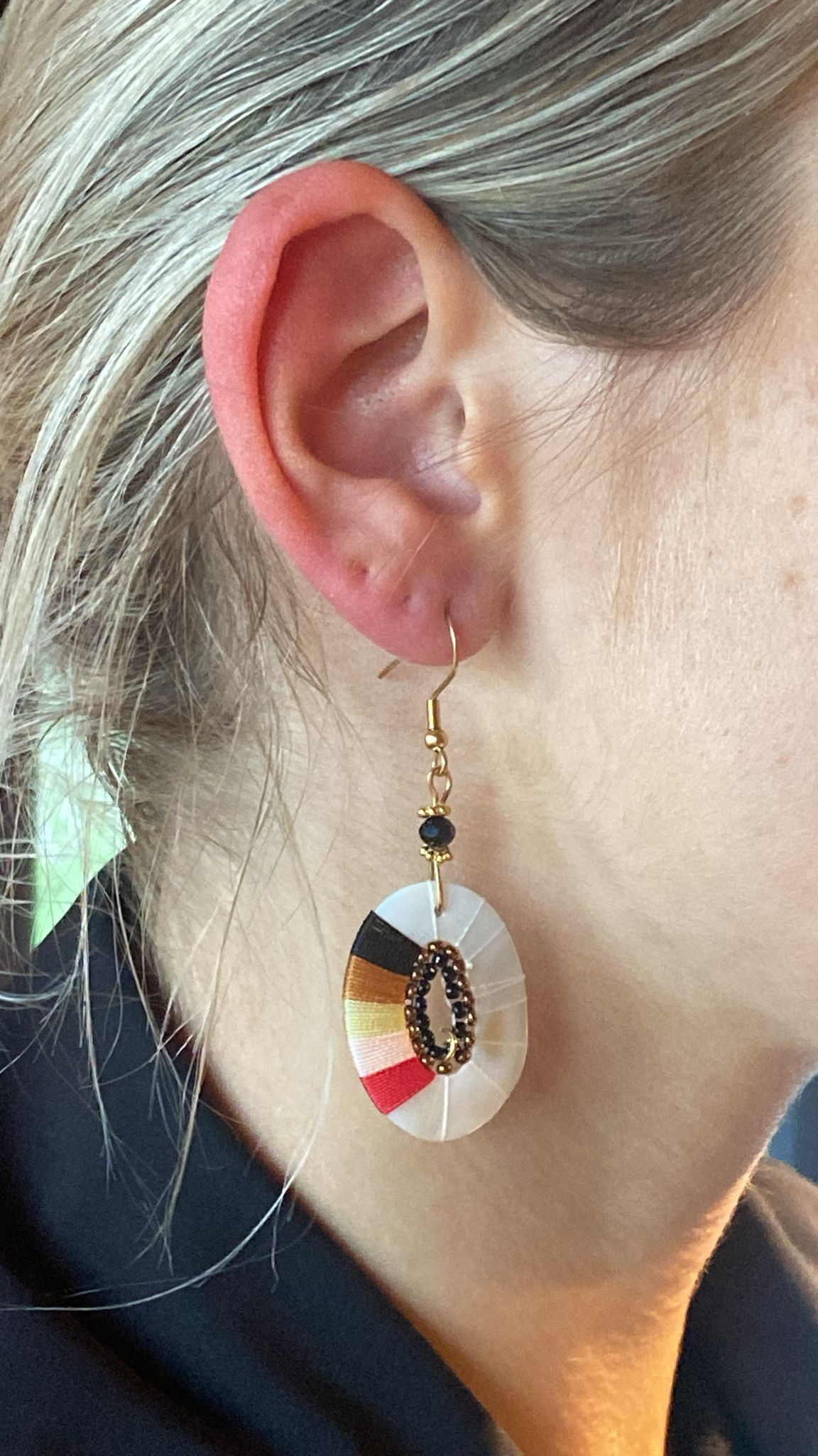 Laissez-vous envoûter par l’éclat naturel de la nacre allié à la richesse des fils tissés et des perles délicatement travaillées. Véritables pièces artisanales, ces boucles “Éventail de Bali” reflètent la chaleur des marchés indonésiens, les couleurs éclatantes des tissus locaux et la poésie nacrée des coquillages des îles.