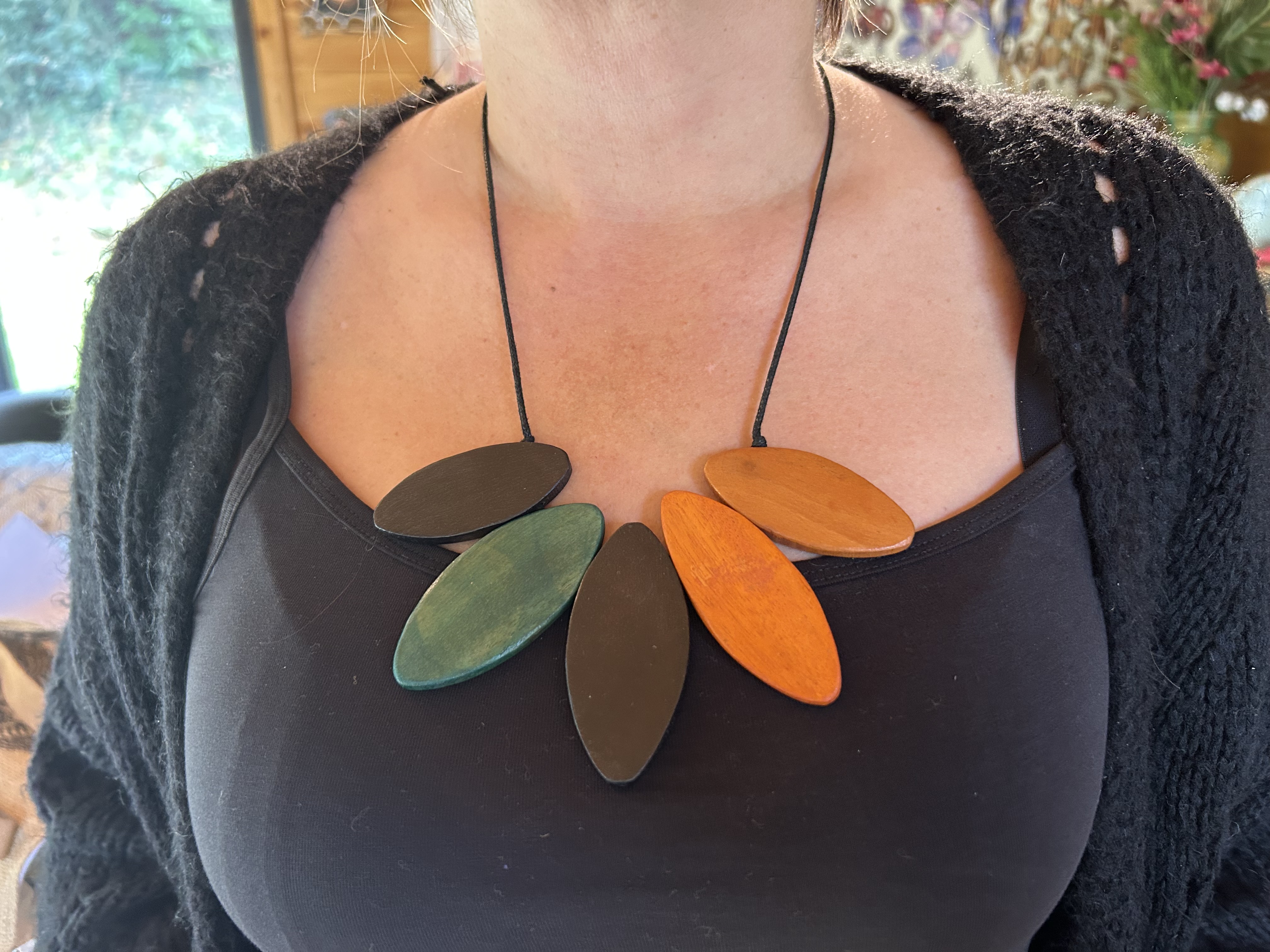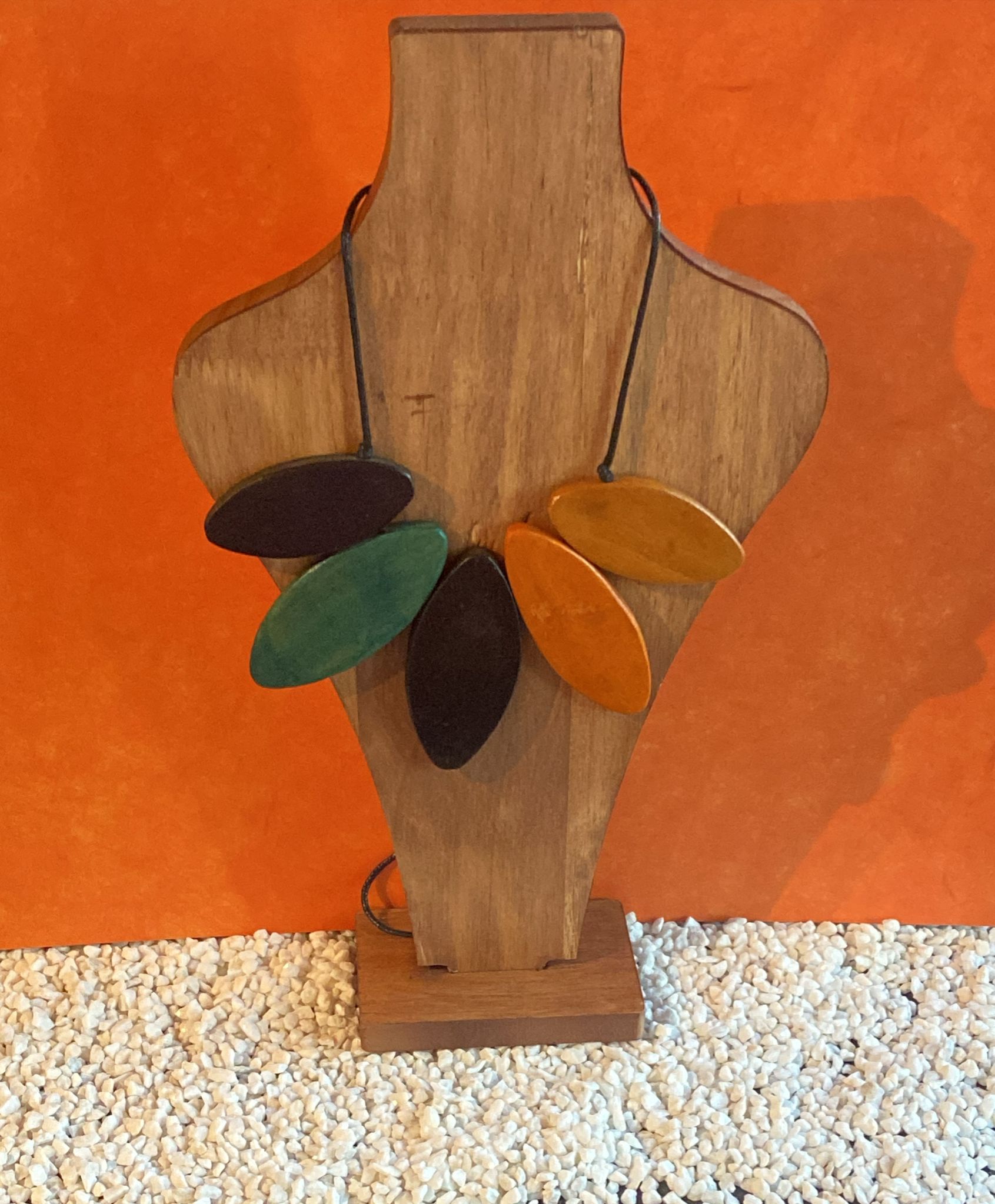 Nom : Collier Artisanal en Bois Naturel “Feuilles d’Indonésie”