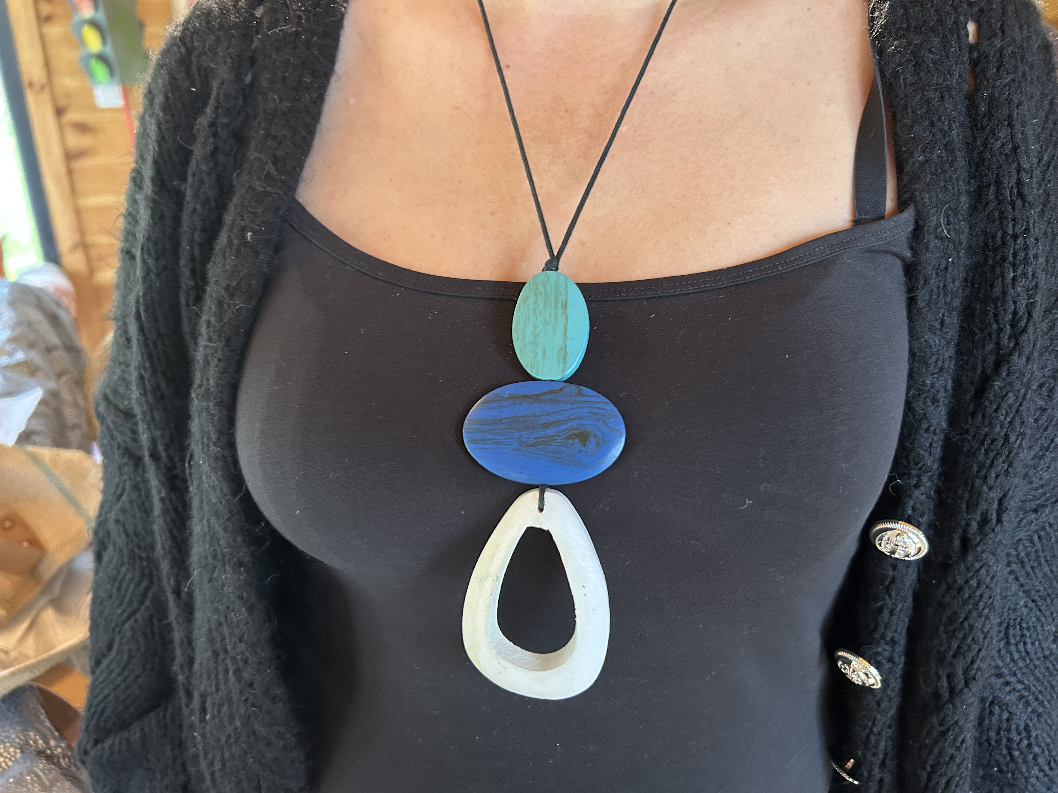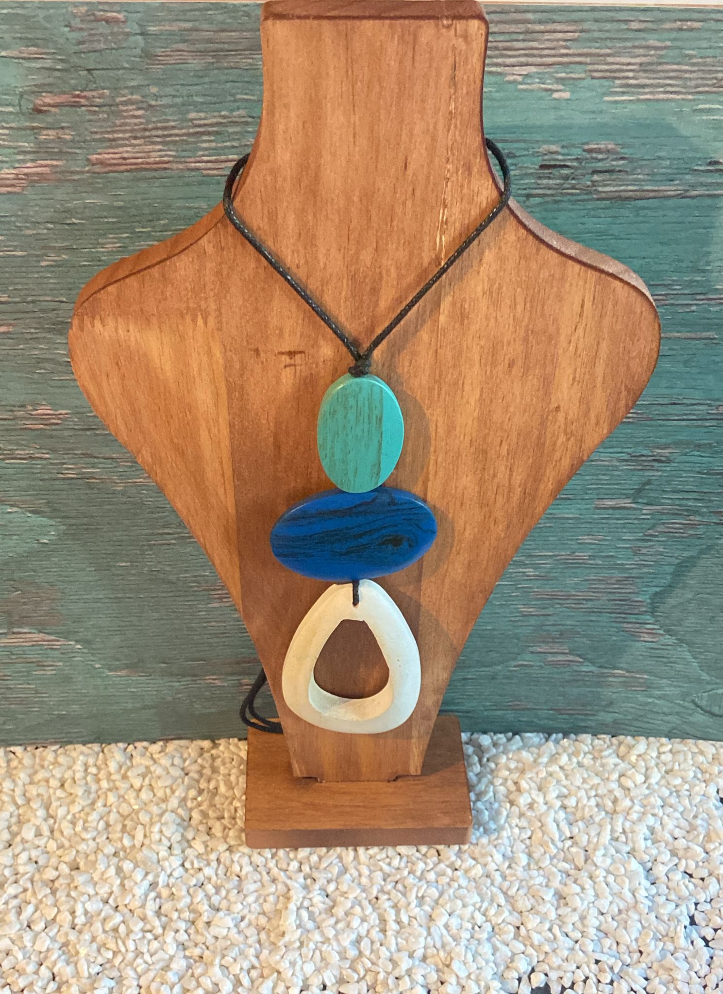 Ce collier est composé de trois pièces sculptées, façonnées et polies à la main: