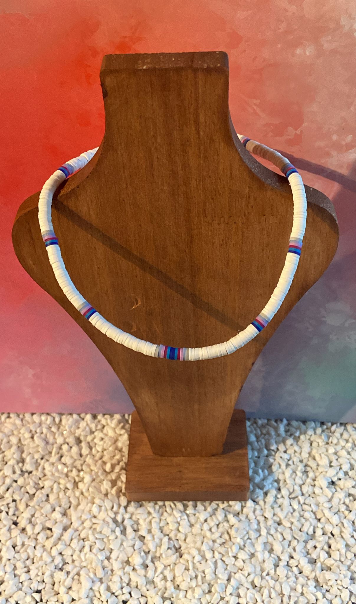 Nom : Collier Heishi “Pure Waves – White & Lagoon Lines”