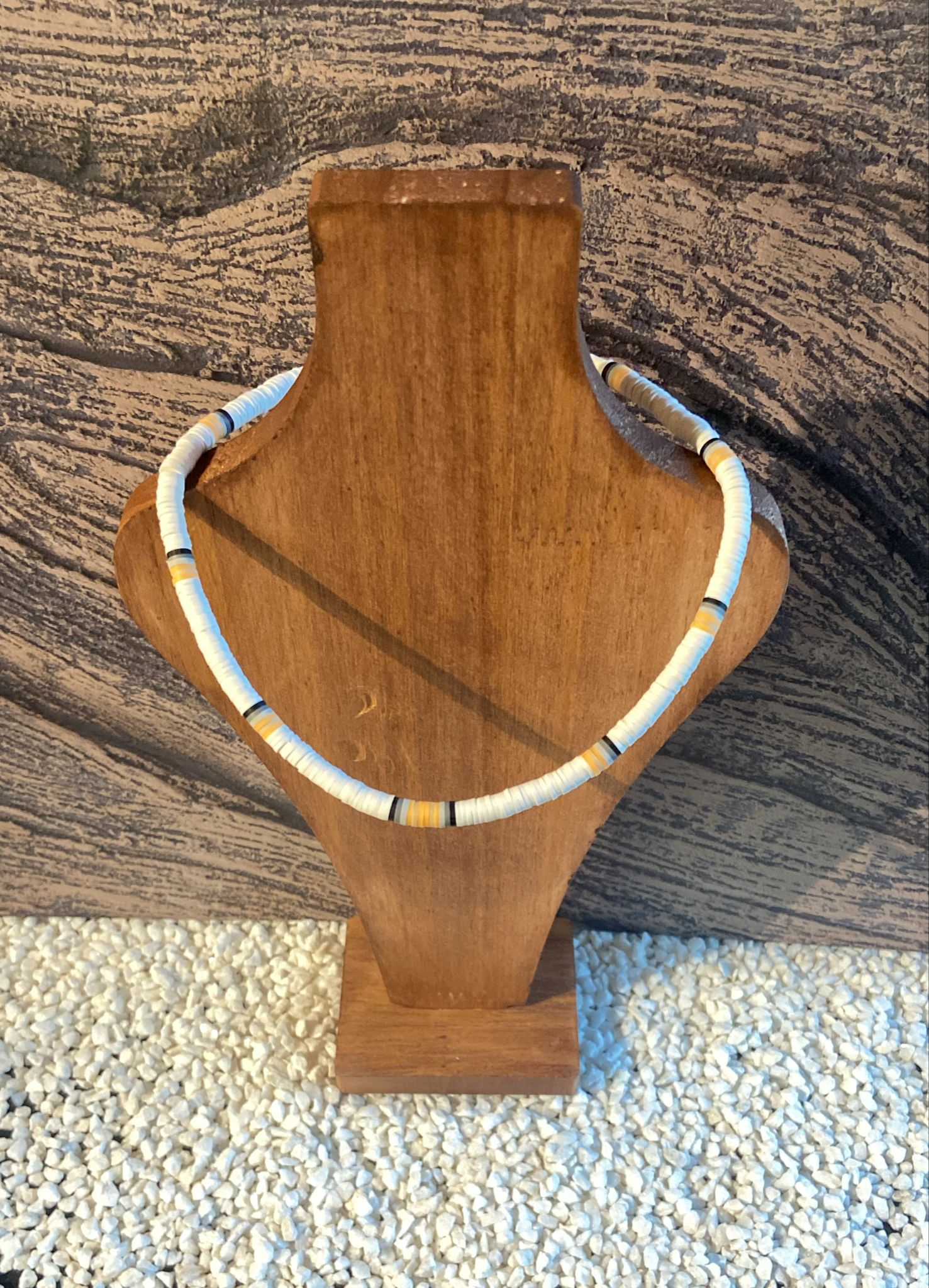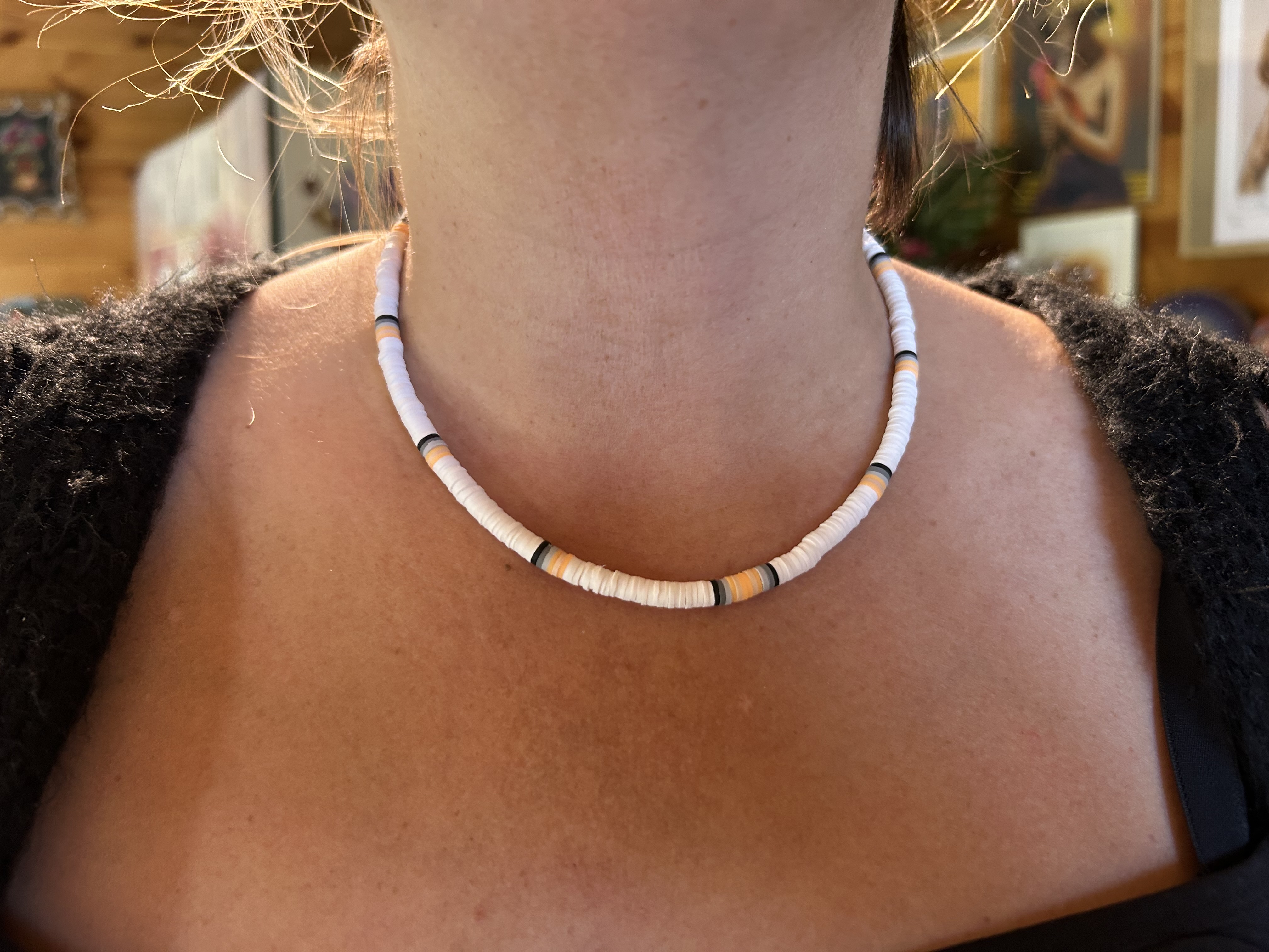 Nom : Collier Heishi “Pure Waves – White & Sand Lines”