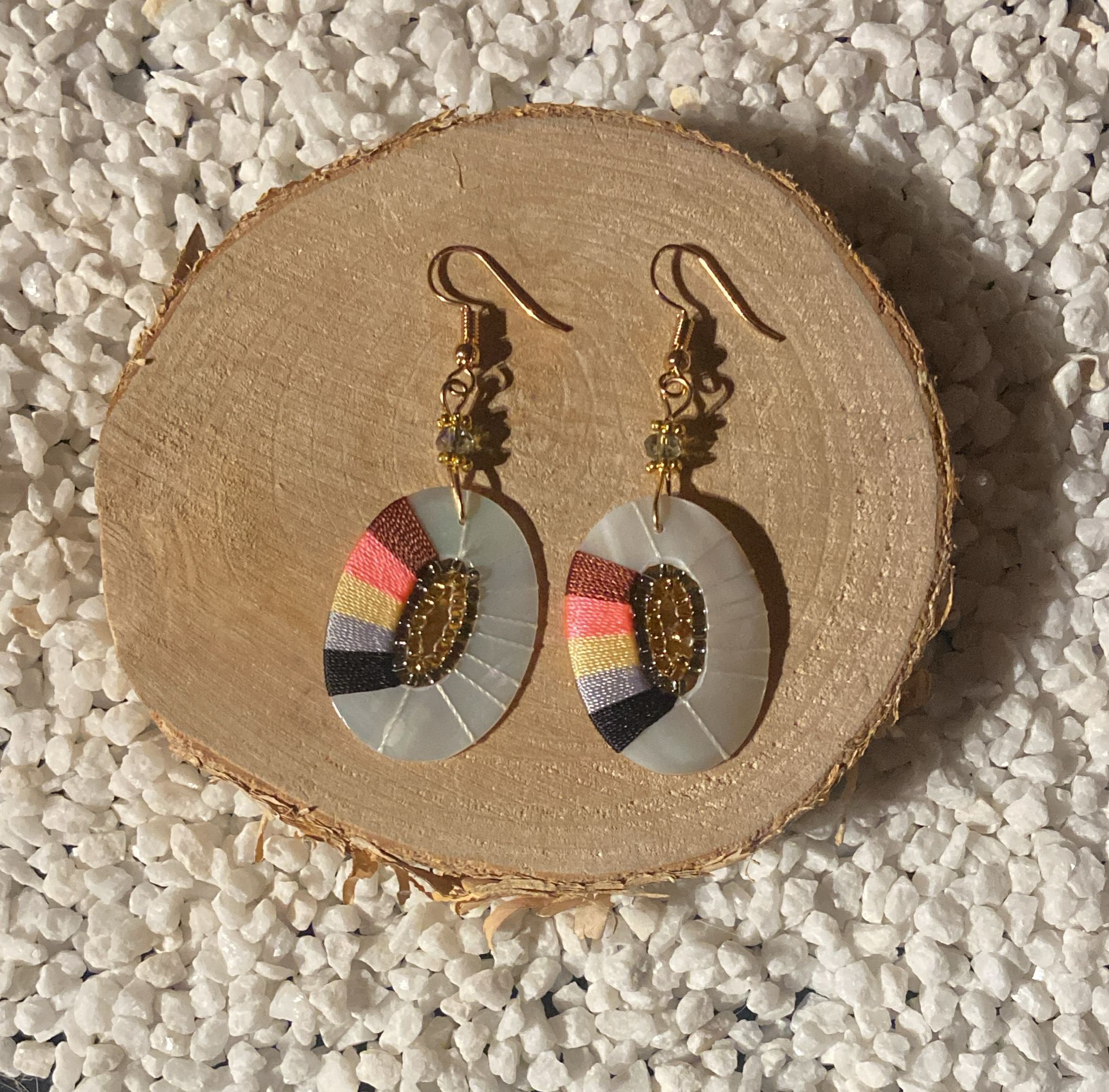 Laissez-vous envoûter par l’éclat naturel de la nacre allié à la richesse des fils tissés et des perles délicatement travaillées. Véritables pièces artisanales, ces boucles “Éventail de Bali” reflètent la chaleur des marchés indonésiens, les couleurs éclatantes des tissus locaux et la poésie nacrée des coquillages des îles.