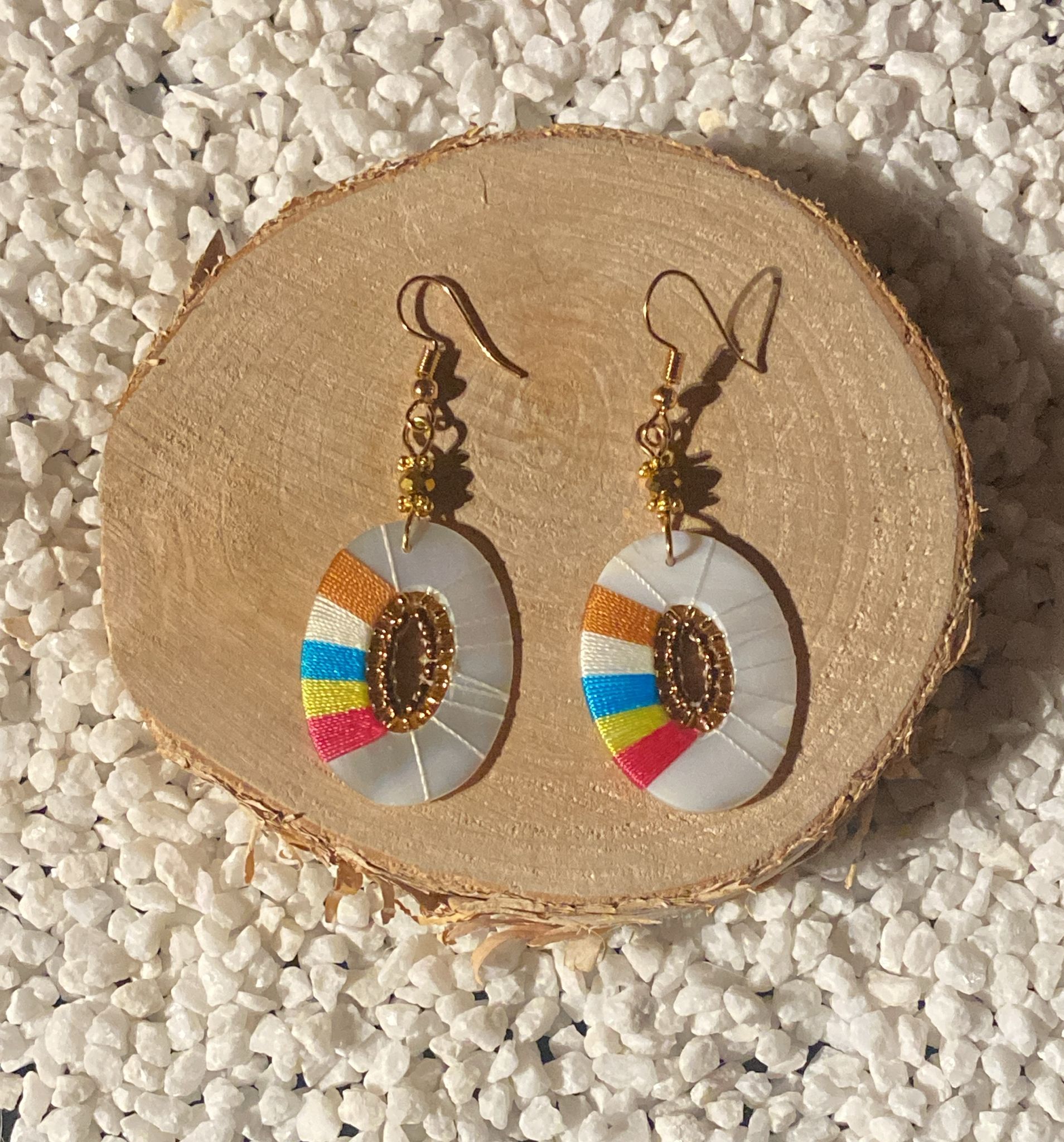 Laissez-vous envoûter par l’éclat naturel de la nacre allié à la richesse des fils tissés et des perles délicatement travaillées. Véritables pièces artisanales, ces boucles “Éventail de Bali” reflètent la chaleur des marchés indonésiens, les couleurs éclatantes des tissus locaux et la poésie nacrée des coquillages des îles.
