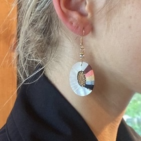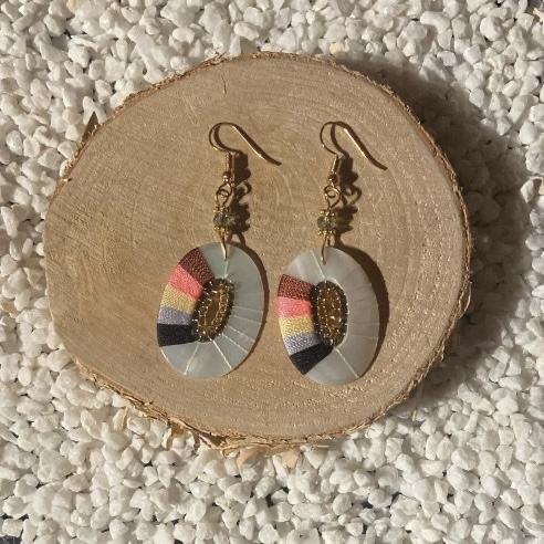 Laissez-vous envoûter par l’éclat naturel de la nacre allié à la richesse des fils tissés et des perles délicatement travaillées. Véritables pièces artisanales, ces boucles “Éventail de Bali” reflètent la chaleur des marchés indonésiens, les couleurs éclatantes des tissus locaux et la poésie nacrée des coquillages des îles.