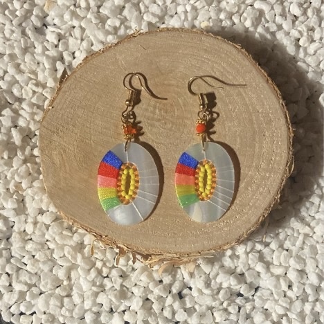 Laissez-vous envoûter par l’éclat naturel de la nacre allié à la richesse des fils tissés et des perles délicatement travaillées. Véritables pièces artisanales, ces boucles “Éventail de Bali” reflètent la chaleur des marchés indonésiens, les couleurs éclatantes des tissus locaux et la poésie nacrée des coquillages des îles.