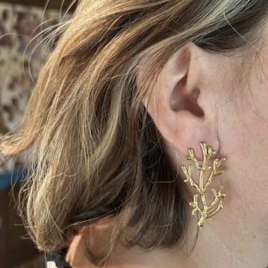 Inspirées des branches de corail, ces boucles d’oreilles en métal doré rendent hommage à la beauté organique des fonds marins.