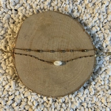 Pureté & Lumière mêlées La perle centrale, baignée par l'éclat des chaînes dorées, apporte un sentiment de calme, de sérénité et de beauté intemporelle. Un duo qui ne se contente pas de briller – il vous enveloppe de douceur.