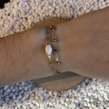 Inspiré par la noblesse des perles et l'éclat chaleureux de l'or, le bracelet Alya séduit par son accumulation sophistiquée et son énergie intemporelle. Son double rang doré est conçu pour célébrer la pureté et la féminité, offrant un contraste parfait entre :