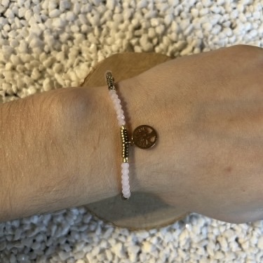 Pierre : Quartz Rose (perles) pour l'amour inconditionnel, l'apaisement et l'harmonie.