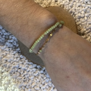 Sérénité & Clarté mêlées L'alliance des perles vert d'eau et de l'or crée une aura de calme et de fraîcheur. Ce duo subtil est idéal pour apporter une touche de couleur sans effort.