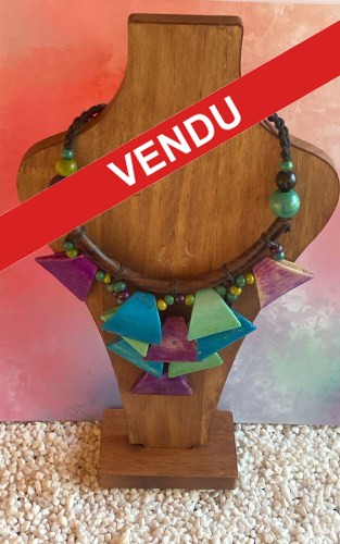 Le collier Artisanal Bleu Turquoise & Violet est une pièce spectaculaire et élégante, qui témoigne de l'excellence du savoir-faire artisanal indonésien. Ce bijou expressif est idéal pour ajouter une touche artistique et ethnique à n’importe quelle tenue.