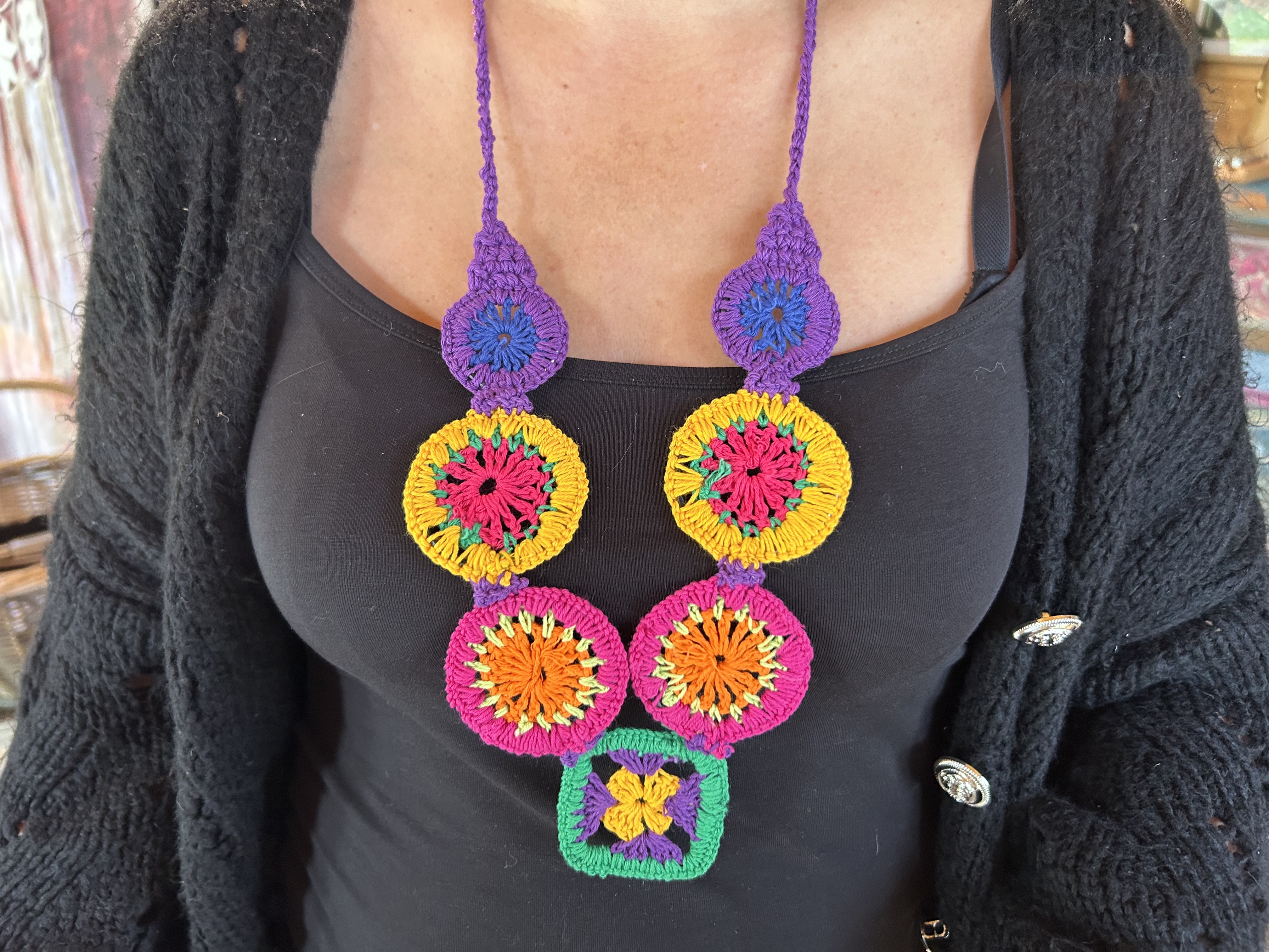 Le collier Festival Tropical Crocheté est une véritable explosion de couleurs et de bonne humeur. Ce bijou incarne l’énergie vibrante des marchés tropicaux et la joie de vivre des îles lointaines.