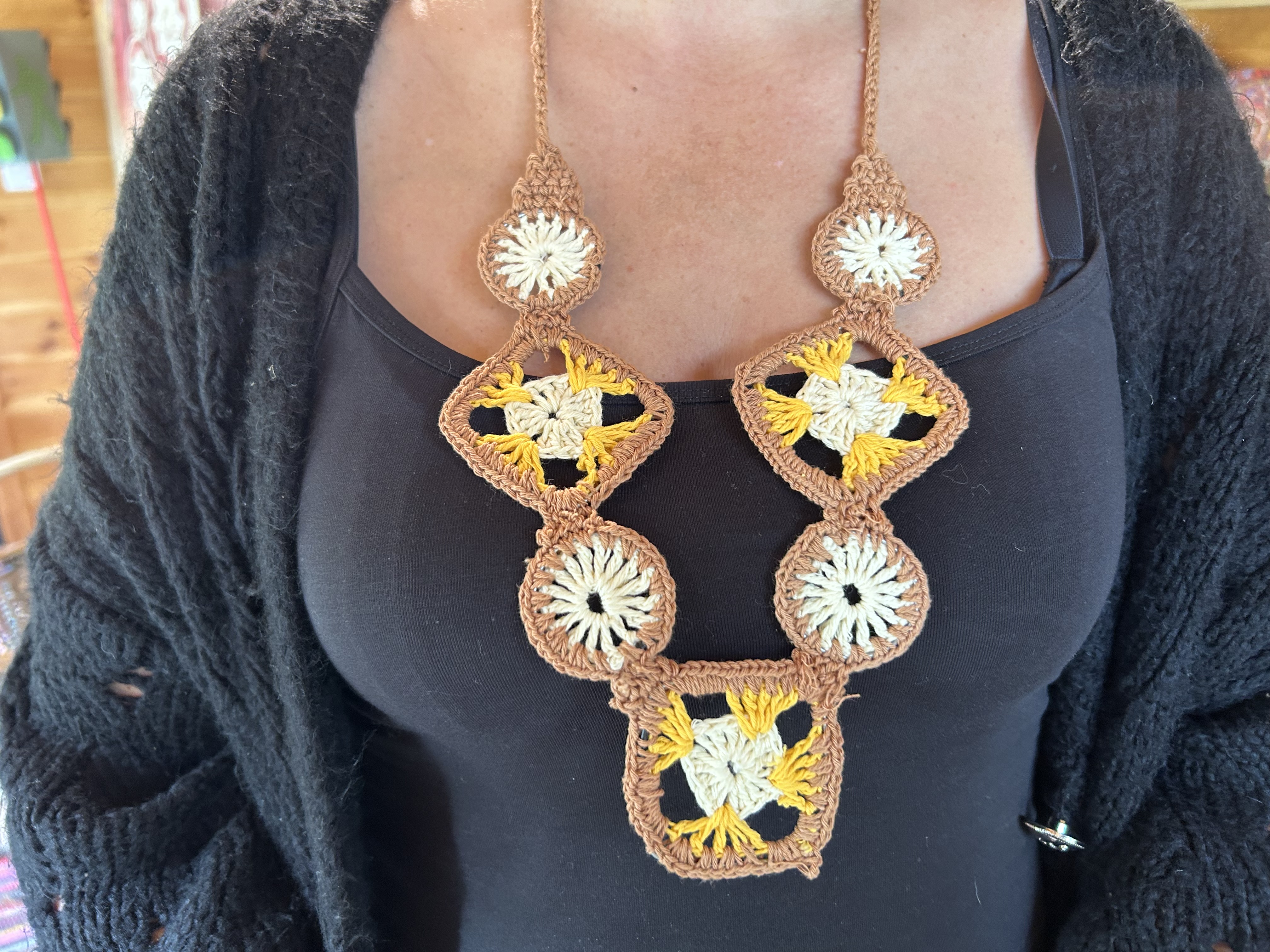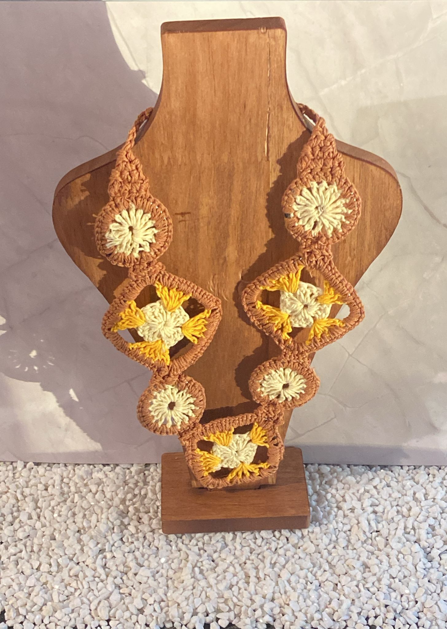 Le collier Terre & Soleil Crocheté est une pièce délicate et chaleureuse, qui incarne la beauté organique des paysages indonésiens. Réalisé entièrement à la main selon la technique traditionnelle du crochet, il est l'expression d'un artisanat profondément authentique.