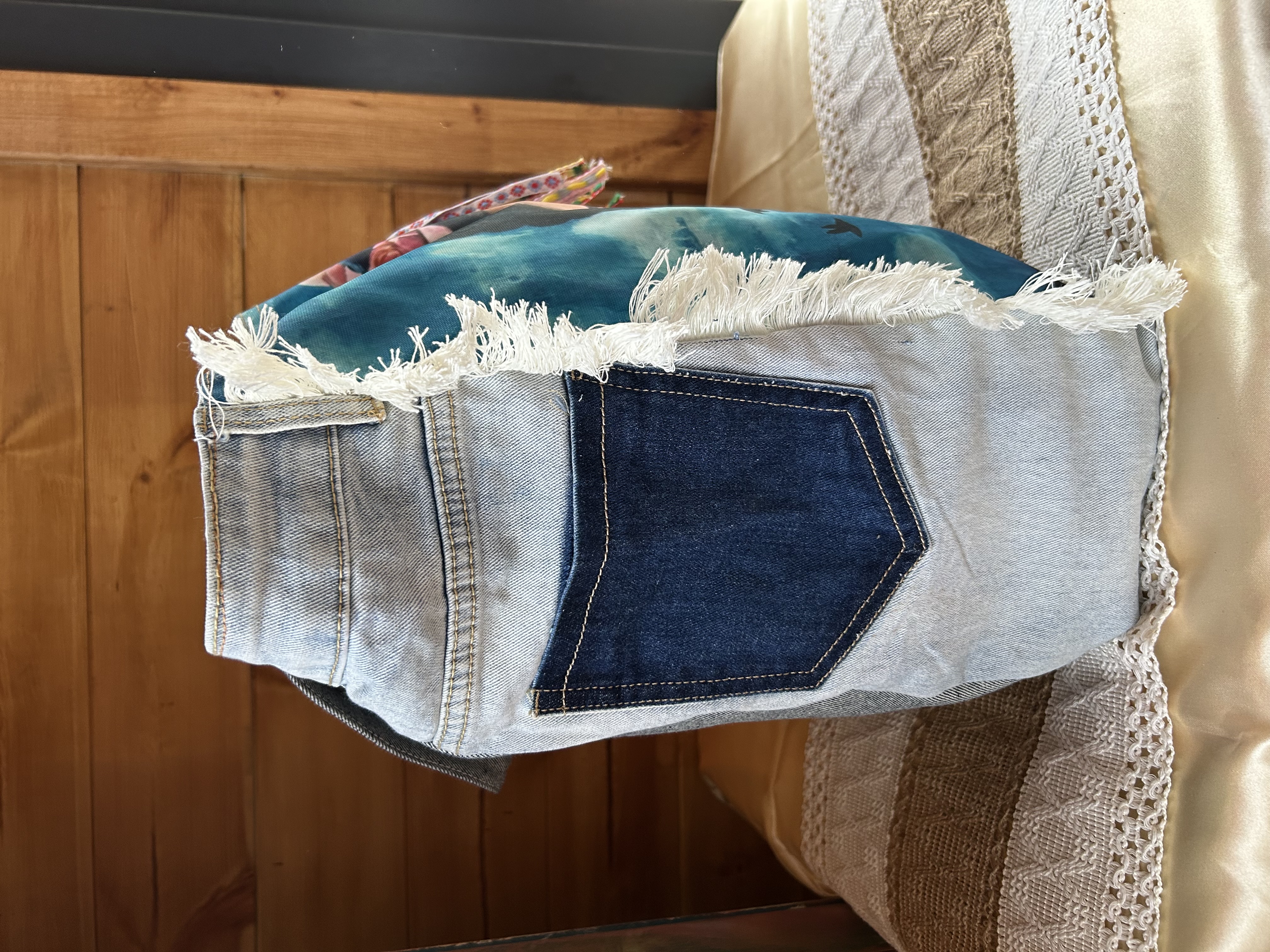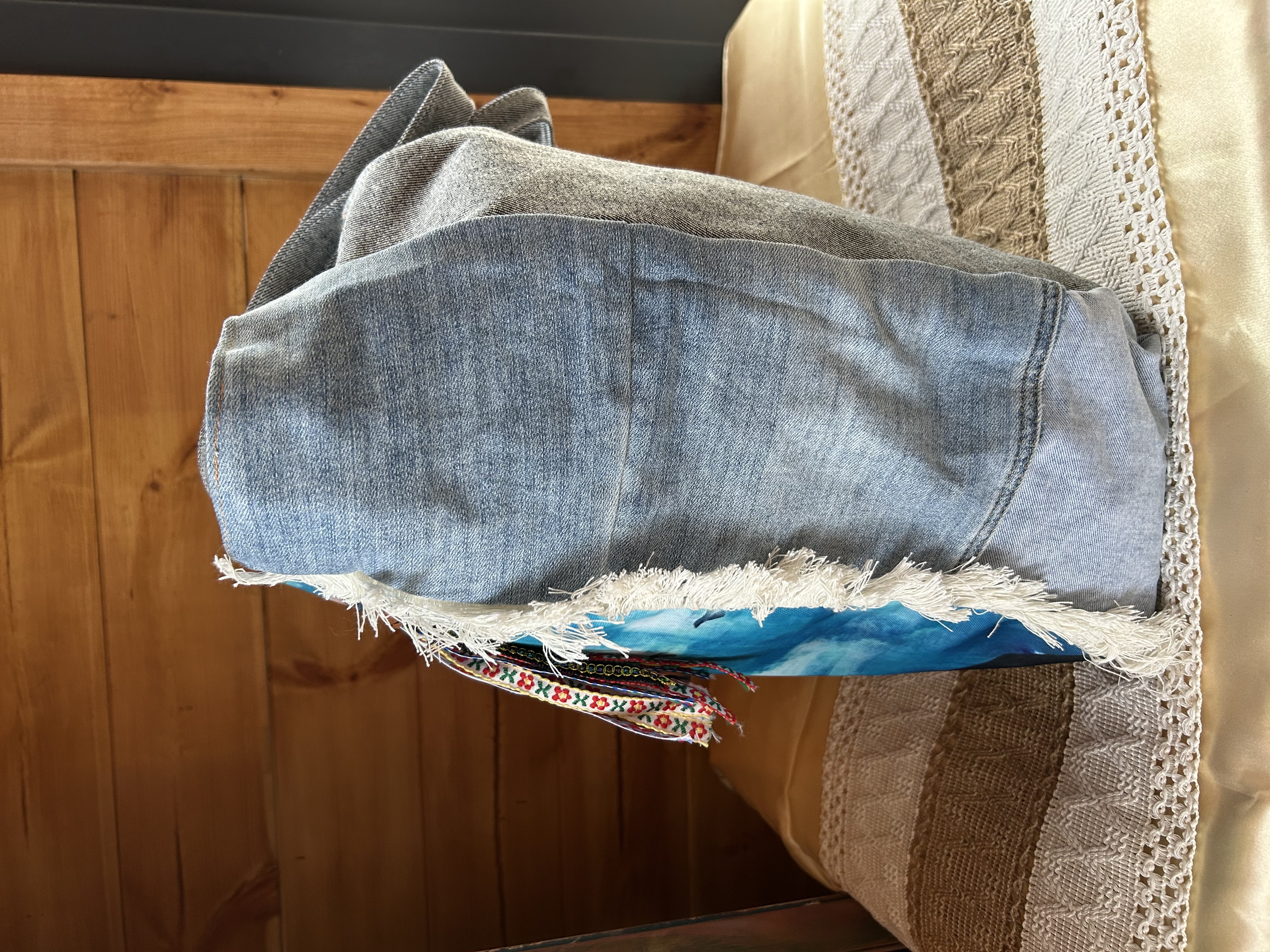 Ce sac, confectionné à la main à partir de jean recyclé et de toile naturelle, unit art, émotion et artisanat. Chaque pièce est une ode à la créativité et à la liberté des femmes du monde.
