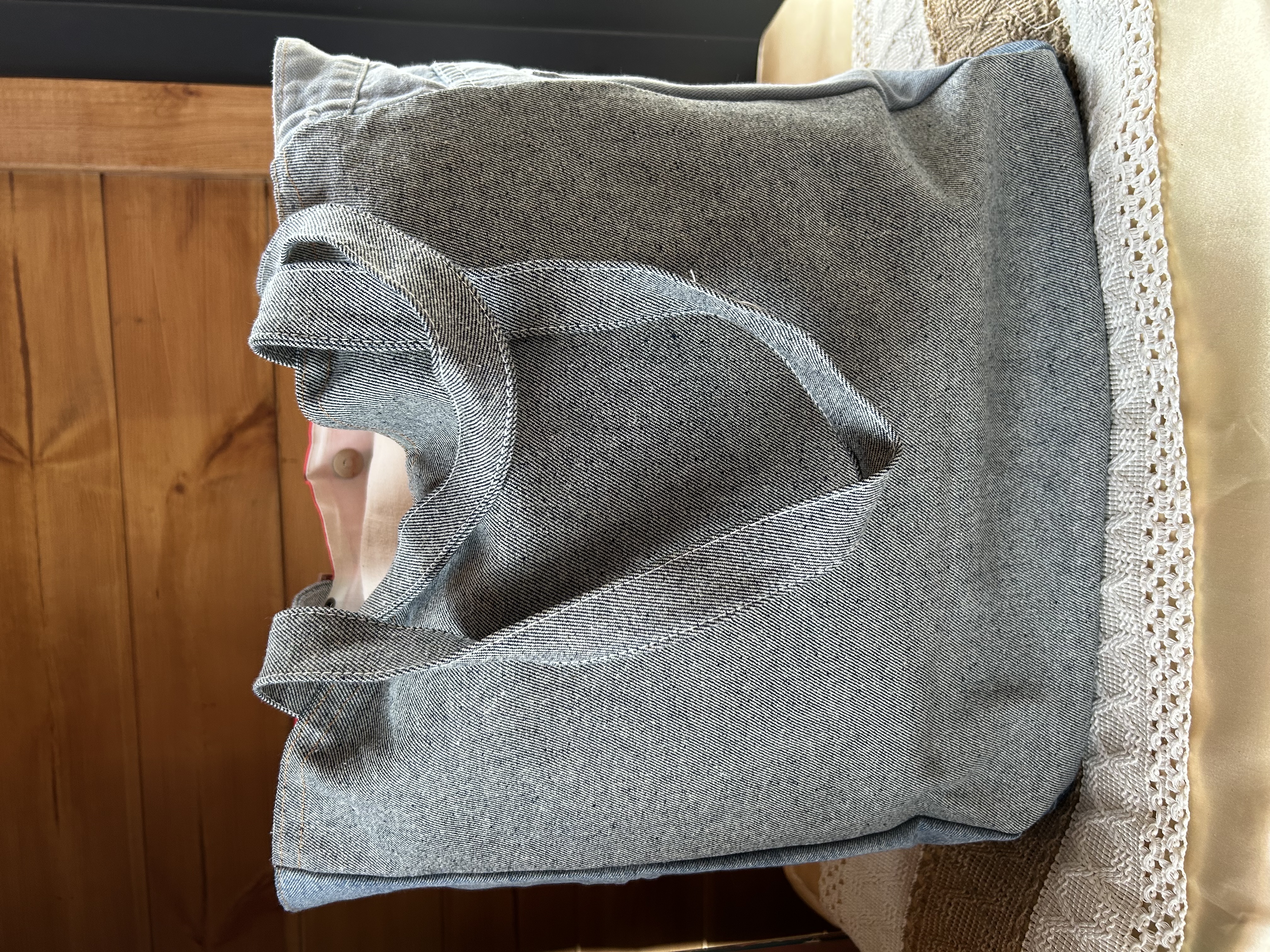 Le sac est confectionné à partir de jean recyclé et de toile de coton, alliant éthique et caractère.