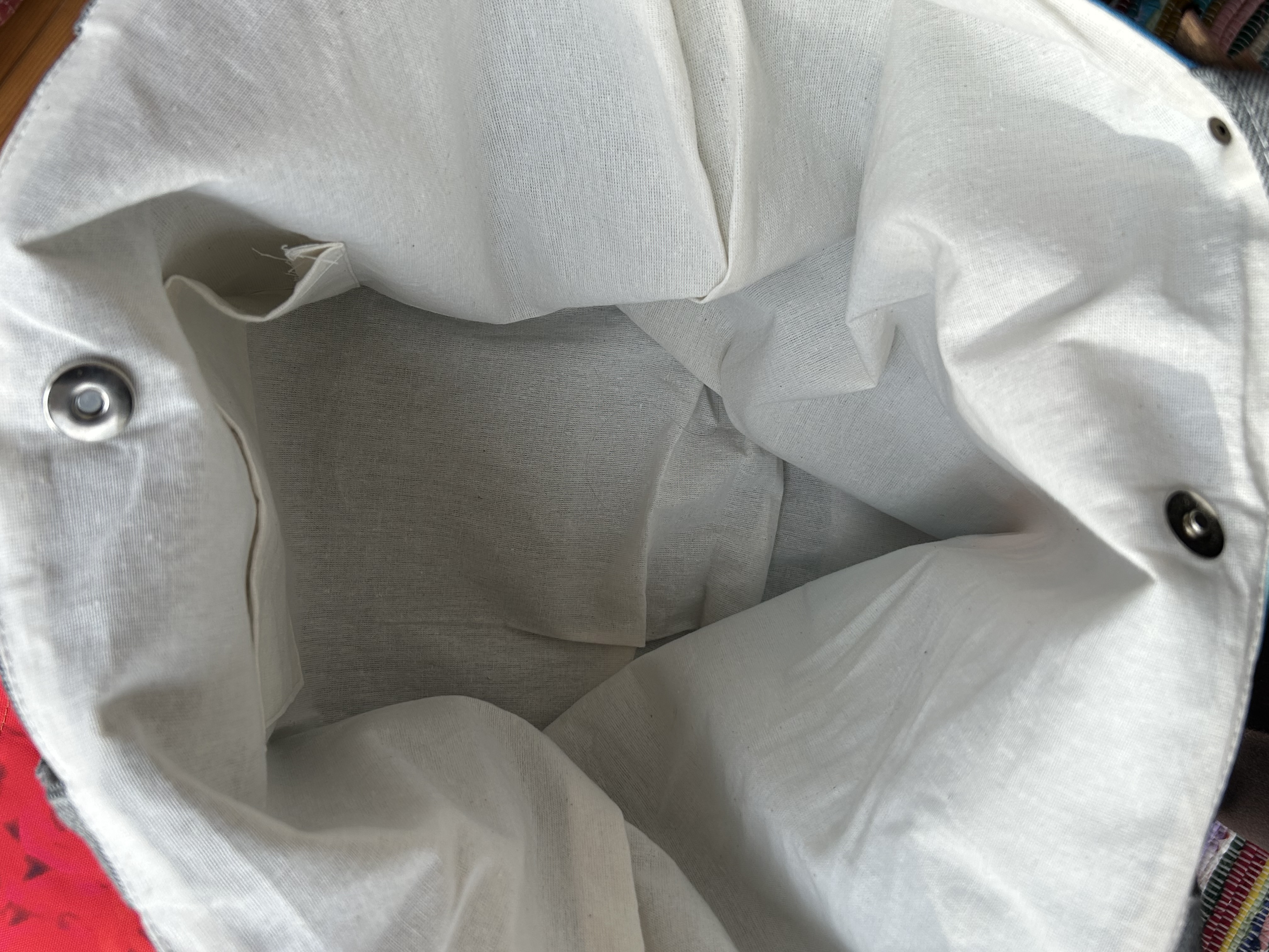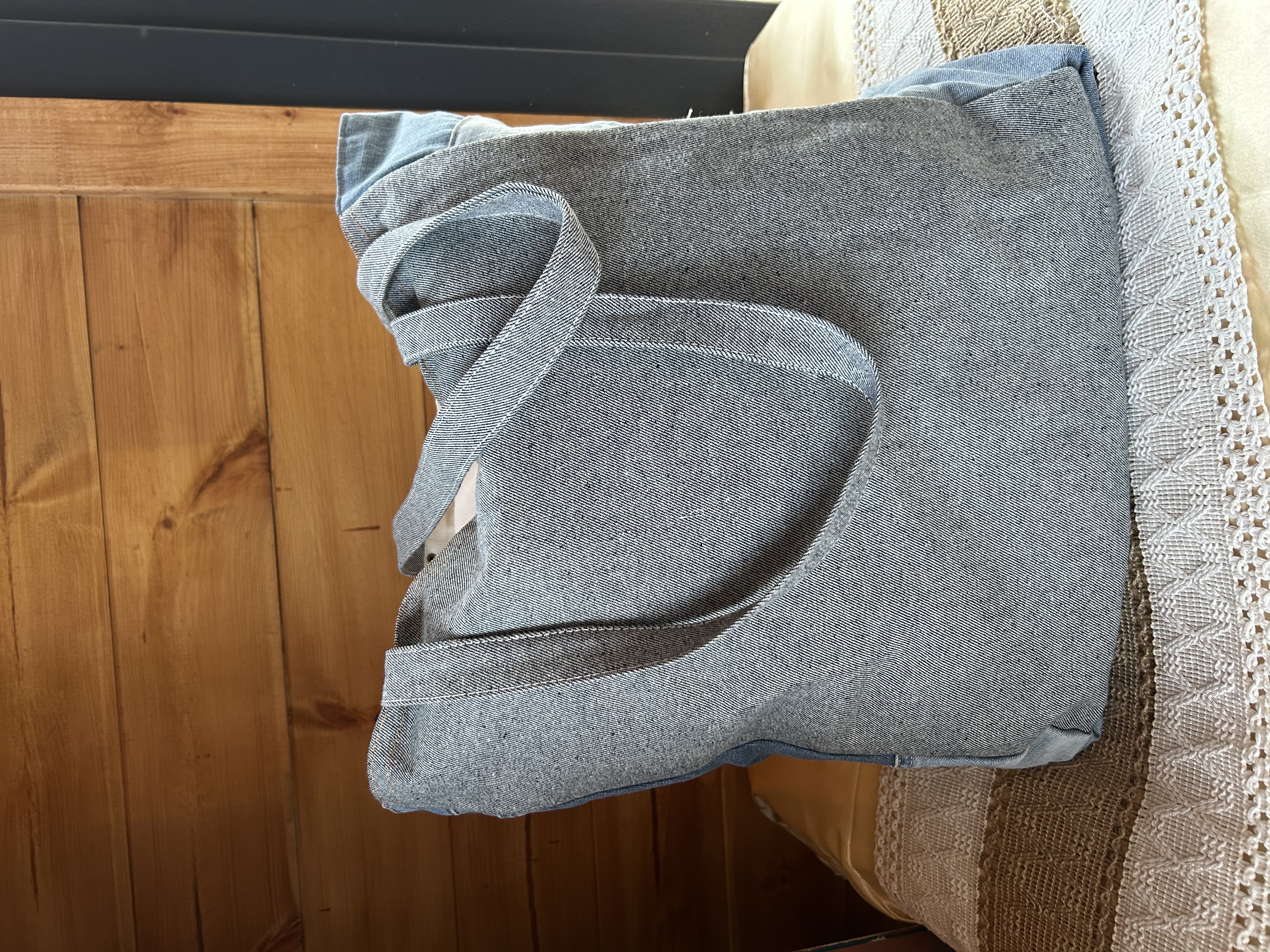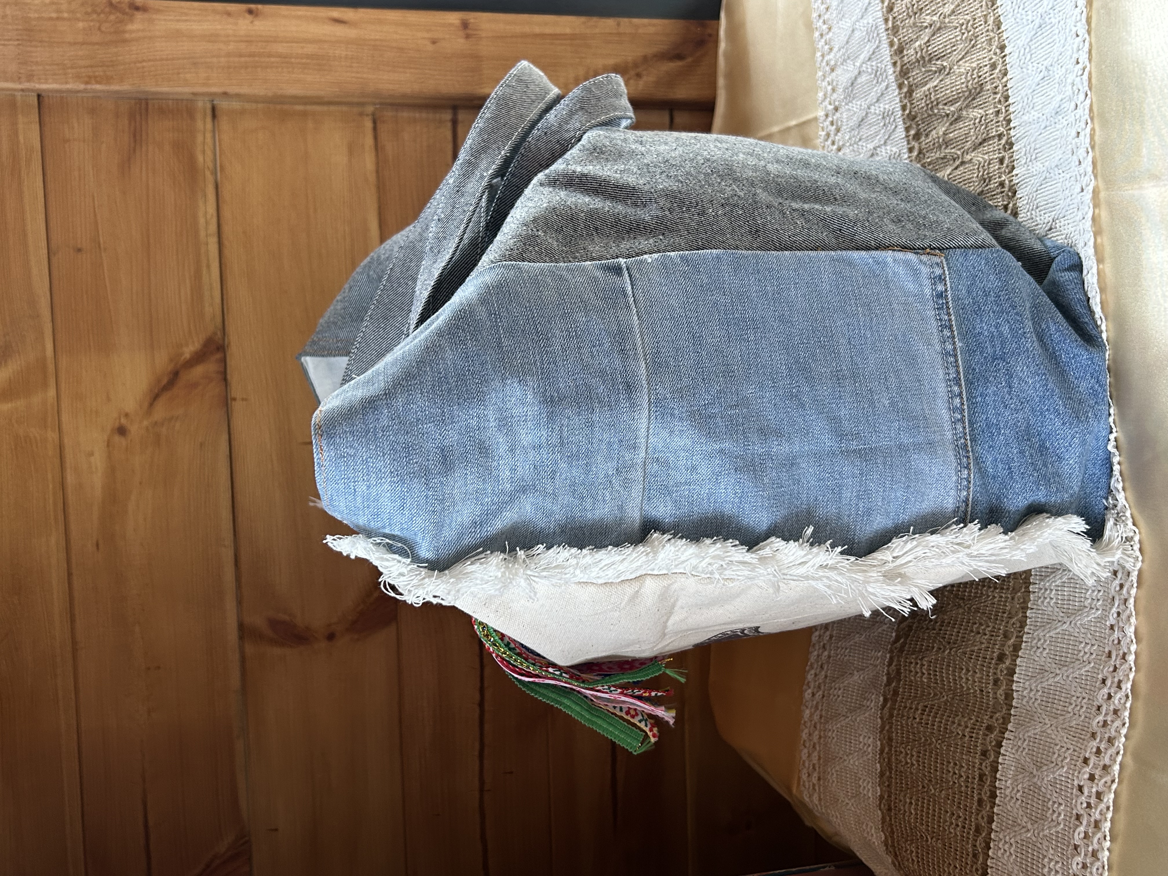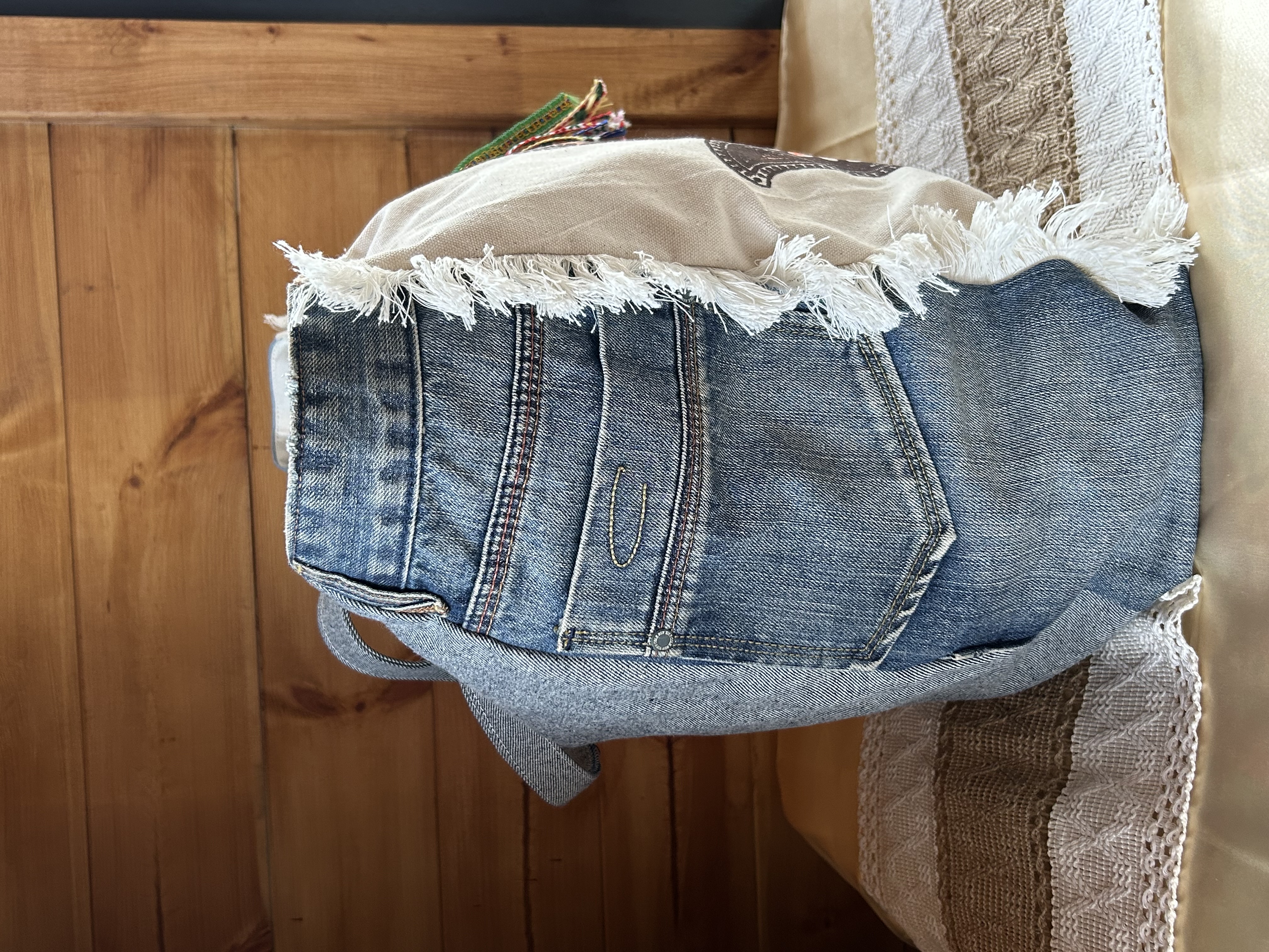 Matières : Jean recyclé, toile de coton imprimée.