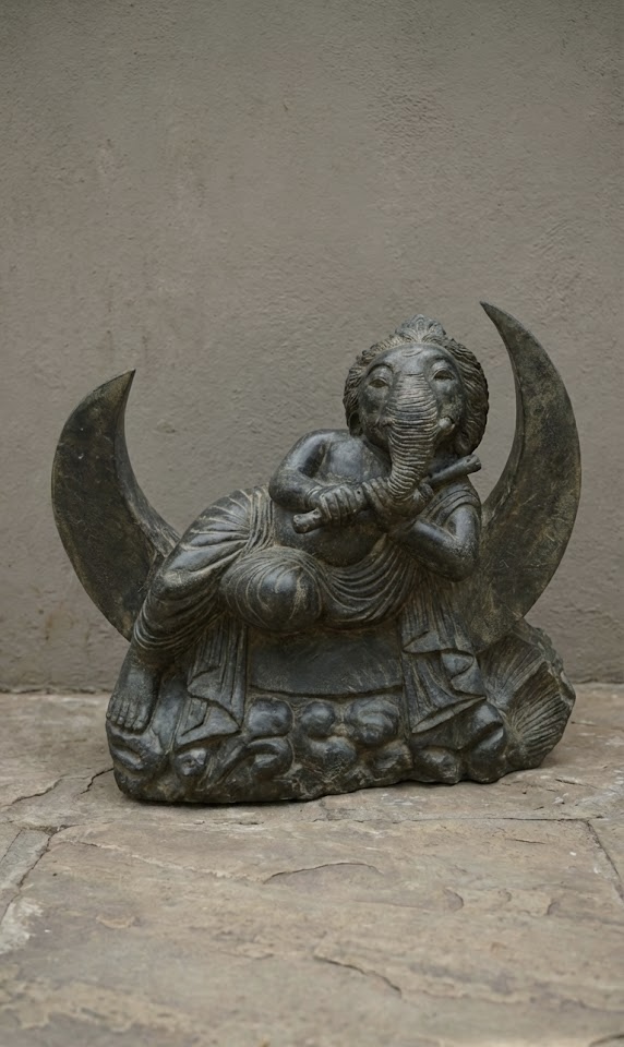 Découvrez cette élégante statue de Ganesh sur la Lune de 95 cm, soigneusement sculptée à la main en Indonésie avec de la pierre naturelle Green Stone. Représenté paisiblement assis sur la Lune, Ganesh symbolise la sagesse et la protection, parfait pour instaurer une ambiance zen et harmonieuse dans votre jardin ou votre intérieur.