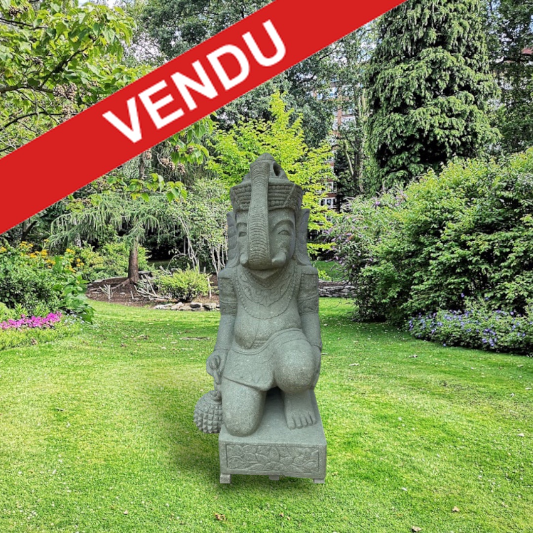 Découvrez ce majestueux Ganesh Warrior de 150 cm, soigneusement sculpté à la main en Indonésie avec de la pierre naturelle Green Stone. Symbole de protection et de force, Ganesh écarte les obstacles et accompagne les projets vers le succès. Cette statue est idéale pour créer une ambiance zen et spirituelle dans votre jardin ou intérieur.