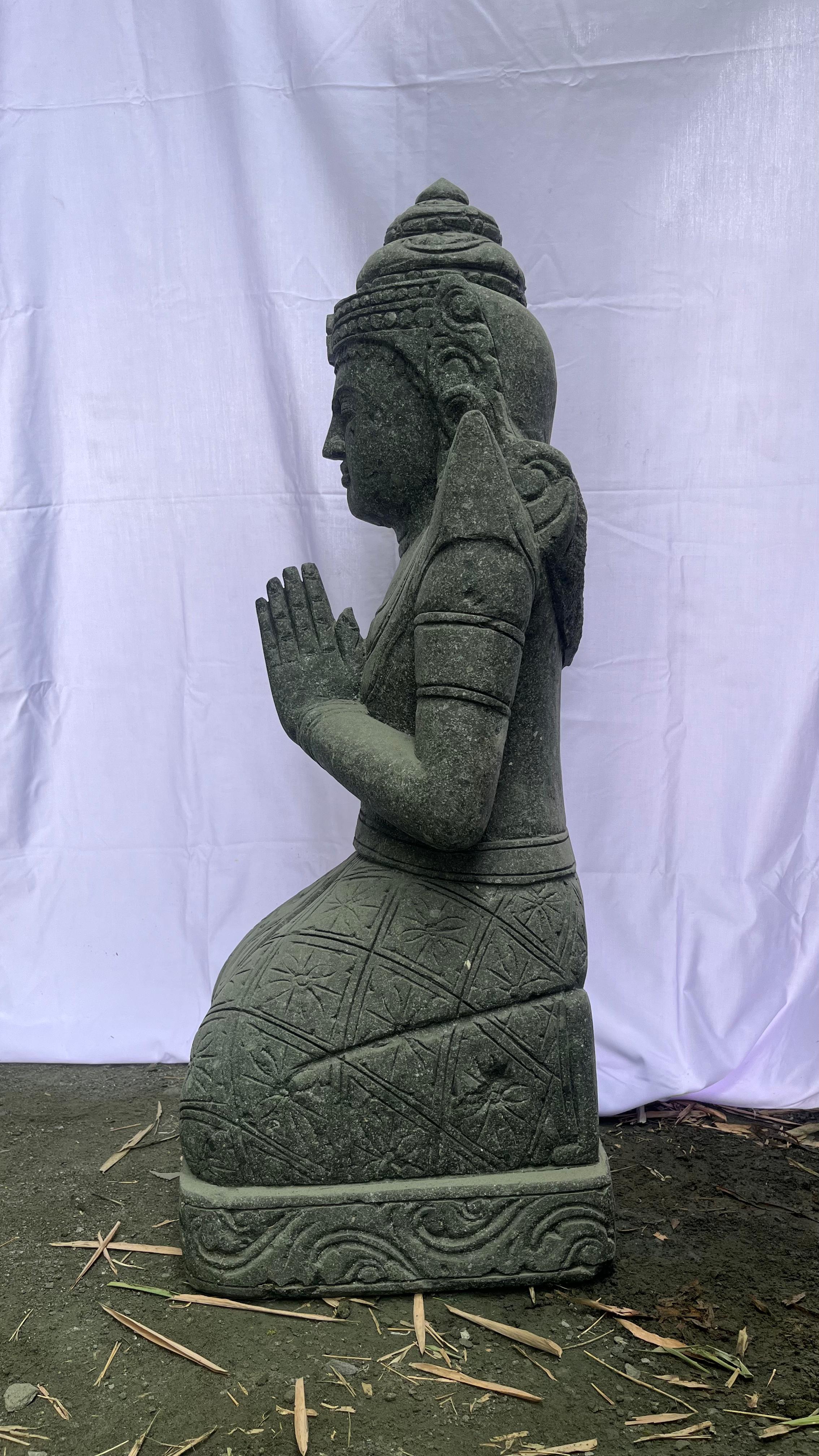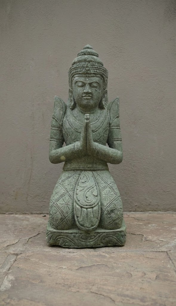 Découvrez cette magnifique statue de Teppanom de 100 cm, un ange gardien traditionnel soigneusement sculpté à la main en Indonésie dans la pierre naturelle Green Stone. Symbole de bienvenue, de bienveillance et de protection, cette figure sacrée est idéale pour apporter une touche de sérénité et une protection spirituelle à l'entrée de votre maison ou au cœur de votre jardin.